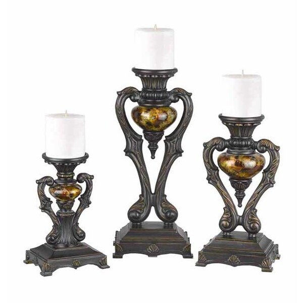 Antique Bronze Traditional Resin Candle Holder w/Reverse Painted Glass (Discontinued)