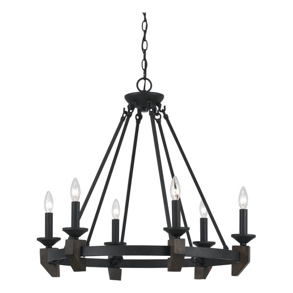 Warm Bronze / Wood Cruz 6 Light Single Tier Chandelier