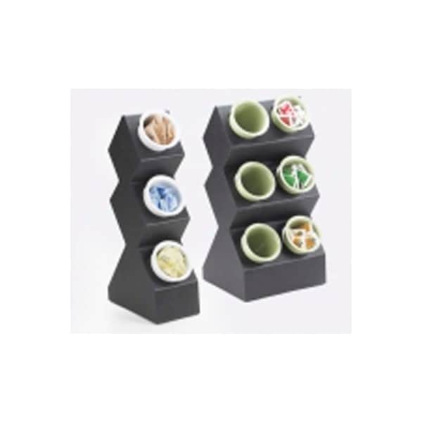 Showcase your condiments, packets, and flatware with this sleek and durable cylinder display that features a black durable abs body accented by cylinders of your choice. This is the perfect way to customize and design your own food service area, helping create a bold and stylish look. Product features: set additional units side by side for more capacity and space saving. Cylinders sold separately.