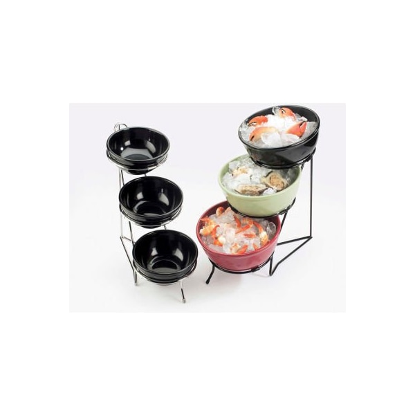 Create your own bowl display and transform your food service area with this three tiered bowl frame. With your choice of various colored bowls, it can be transformed to match your own style. If features a modern and bold steel frame that stylishly holds bowls of all sorts of colors. Product features: eco friendly, holds 8" bowl (sold separately).