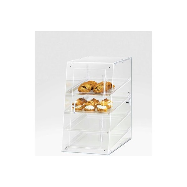 This classic display case features a slant front with a rear and self-serve door for both the server and the customers convenience. You build it, you save. Product features: includes 3 clear trays (13"x 18") easy assembly and disassembly. Bpa free. Dimensions: 19-1/2 w x 17 d x 16-1/2h.