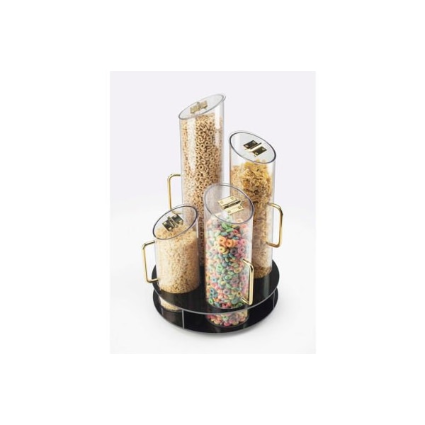 These turntable cereal dispensers are a great way to dress up your breakfast buffet by adding elevation and dimension. This unit includes 4 different sized containers that allow you to offer multiple cereals. The item turns at your guests convenience, making it simple and stylish at the same time.