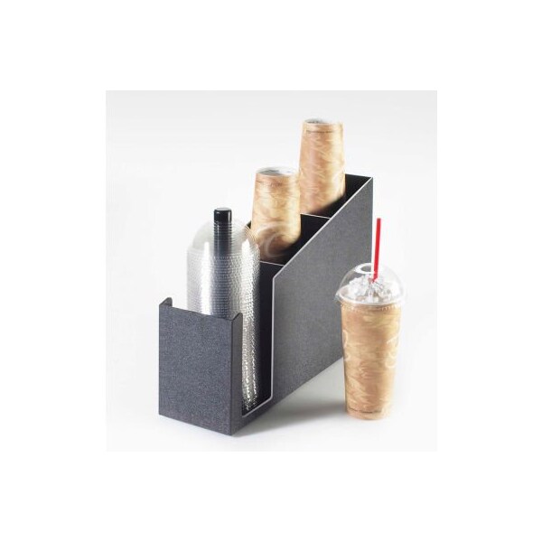 Durable yet stylish 3 compartment cup & lid holder. Perfect for keeping everything looking organized & beautiful. Made with durable abs to help last a long time. Hold up to 4" diameter lids & cups.