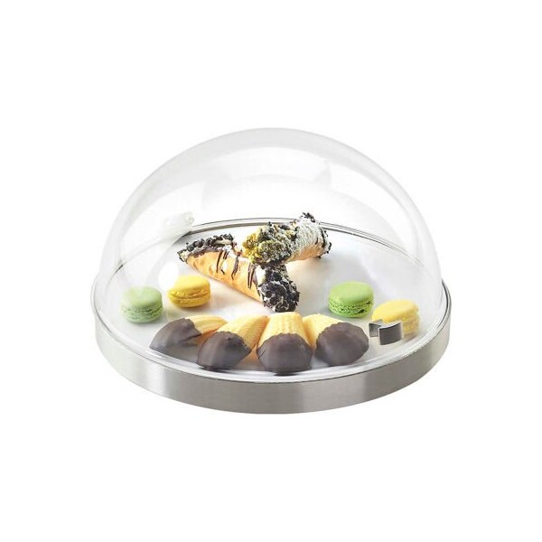 Looking for the perfect way to display your treats that does not allow them to warm or look unappetizing? look no further. The round stainless steel chill pack provides the best of both worlds. The ability to add the cold concept liner and ice packs allow all your favorite presentations to remain chilled, while the acrylic dome cover provides separation and maintaining visibility.
