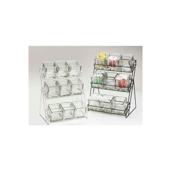 Keep your tabletops free of clutter with this unique iron display that holds up to nine glass jars to create organization and a various selection of condiments. It features a sleek silver or black frame that is accented with glass jars that freshen up any food service area. Product features: eco friendly product, bpa free, glass jars included, dimensions: 13w x 9-1/2d x 17-1/2h.