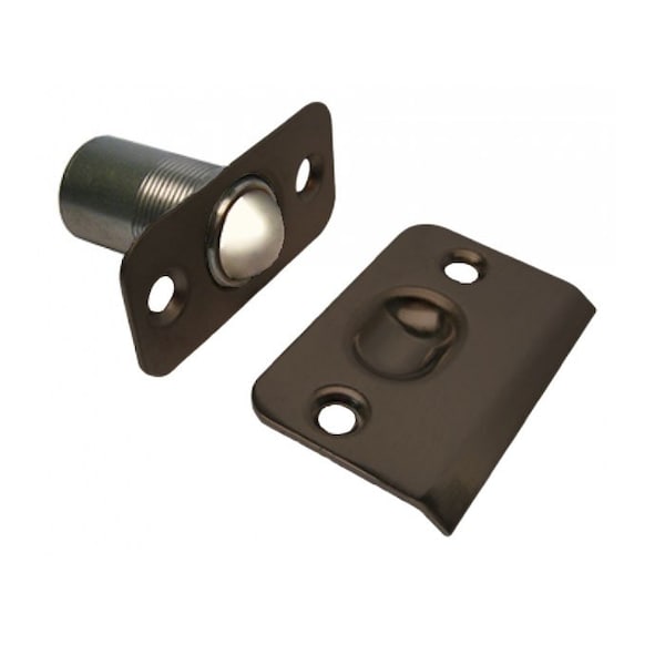 Cal-Royal Door Catches. Solid Brass Adjustable Ball Catch, 1 x 2-1/8, 1/4 Radius Latch Face, 1-3/8 x 2-1/8 Round Corner Strike, US10B Oil Rubbed Bronze