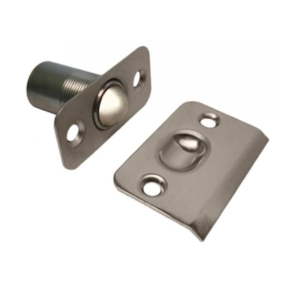 Cal-Royal Door Catches. Solid Brass Adjustable Ball Catch, 1 x 2-1/8, 1/4 Radius Latch Face, 1-3/8 x 2-1/8 Round Corner Strike, US15 Satin Nickel