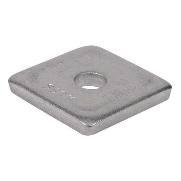 Washer, 316 Stainless Steel, Overall Height 1/4 in, Length 1 5/8 in, Width 1 5/8 in, Depth 15/64 in, Thickness 7/32 in, Finish Polished, Thread Size 3/8 In., Silver, Bolt Size 3/8 in, Cable Range 1.625 in, Conduit Type Strut, Conduit Size 3/8 in, For Strut Channel Size 1 5/8 in, For Use With 1 5/8 in Strut Channels, Hole Diameter 3/8 in, Corrosion Resistant, Weight 0.16 lb