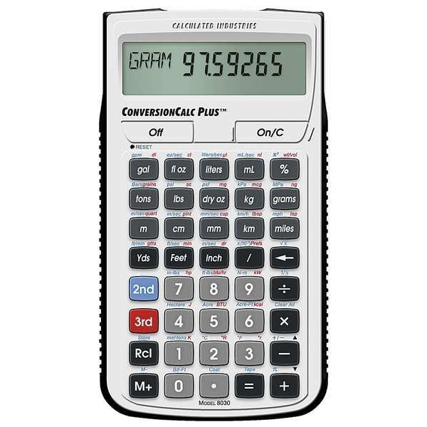 Conversion Calculator, Portable, Length 5 3/4 in, Width 3 in, Depth 1/2 in, Display Digits 14, Display LCD, Display Dimensions 3/4 in H x 2 9/16 in W, Print Type Paperless, Print Speed Not Applicable, Ink Type Not Applicable