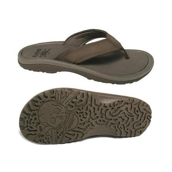 The Calcutta Squall flip flops features a nonmarking outsole with a custom tread design featuring the iconic Calcutta skull and crossbones The design of the custom sole helps channel water to the outside for superior traction on slippery surfaces The Squall has a molded EVA midsole and a dropin super soft foot bed with raised arch The uppers are made from action leather with a quick dry jersey lining and a Calcutta logo on the toe yoke Available in whole sizes 813 and driftwood color We are an outdoor coastal trading company that builds gear and apparel for those with a passion for the outdoors Born in the back of a Florida bait and tackle shop over a quarter century ago, Calcutta was created with a rebellious spirit and an ambitious goal to offer hardworking outdoor products at a reasonable price Calcutta CS3863BRN9