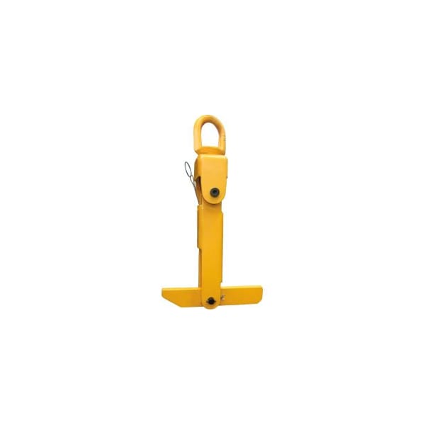 Rugged construction to lift and upend reels. Bearing included for easy rotation to unroll cable. One crane attachment point for both lifting and upending. Optional oblong can be added for large crane hooks. Special long arm option to lift and upend from the outer flange. Bottom arm counterweighted for easy insertion in reel. Pull lanyard for pivoting bottom arm to lift.