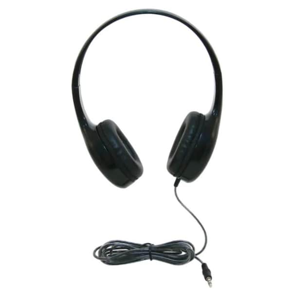 Modern design lightweight stereo black headphone with high quality leatherette, is comfortable to wear for extended hours. The 6 foot 2-layered cut-and-chew-resistant cord is very durable. Reliable and built tough for high-use environments such as schools, day care centers, and libraries. On-ear earcups with high-quality leatherette earpads.