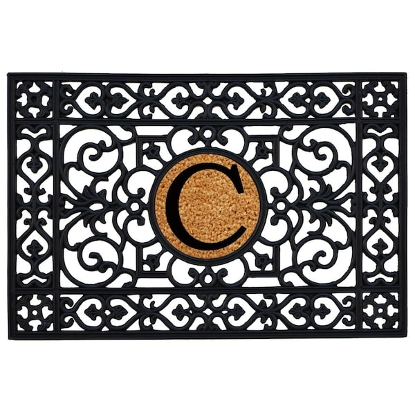 2 x 3 ft. Rubber Monogram Insert Rectangular Doormat, Black - Letter C