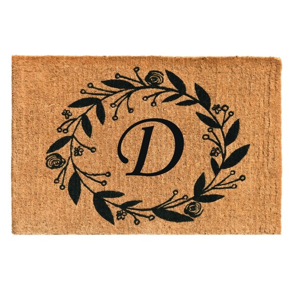 24 x 36 x 1.5 in. Black Rose Rectangular Doormat, Natural - Letter D