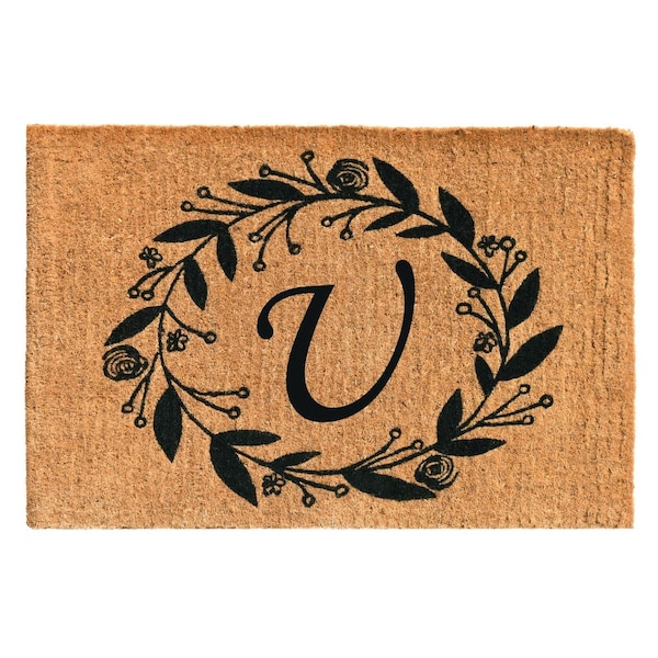 24 x 36 x 1.5 in. Black Rose Rectangular Doormat, Natural - Letter U
