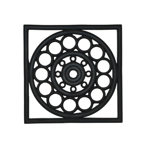 Made of 100% rubber, this contemporary design makes a great accent in your garden, an attractive flower pot trivet or a stepping stone path when two or more are used. Sold as a single unit. Hose clean.