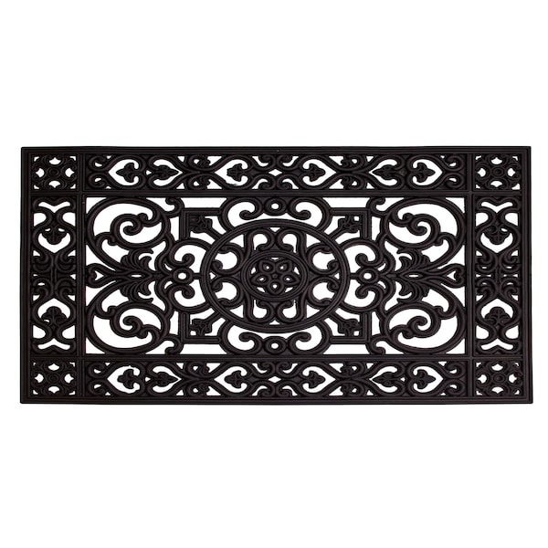 Made of heavy-duty rubber with thick scroll-work that creates a look of wrought iron, this doormat is an excellent choice for double entry doors or sliding patio doors. Made of 100% rubber, this beautiful mat won’t fade, crack or buckle and is weather tolerant. Hose clean.