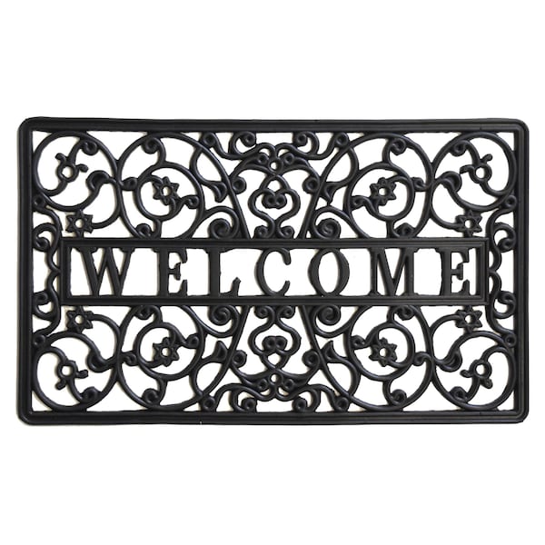 Welcome your guests with this beautiful doormat that is made of 100% rubber and impervious to the elements of weather. Detailed scroll that emulates wrought iron, this heavy-duty mat makes a gorgeous addition to any porch or patio area. Extremely durable, won’t mold or mildew. Hose clean.