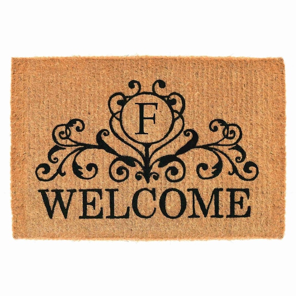 Monogram Door Mat, Black, Natural, 24 in W x 36 in L