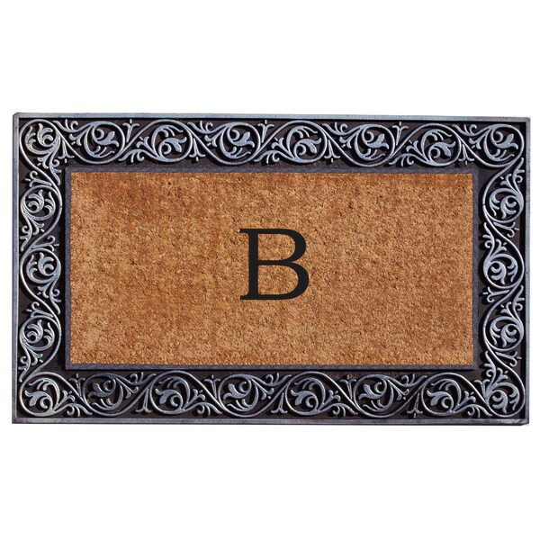 - • Heavy-duty silver rubber border with monogram coir center
