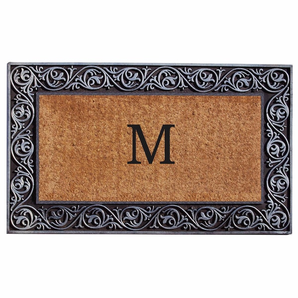 - • Heavy-duty silver rubber border with monogram coir center