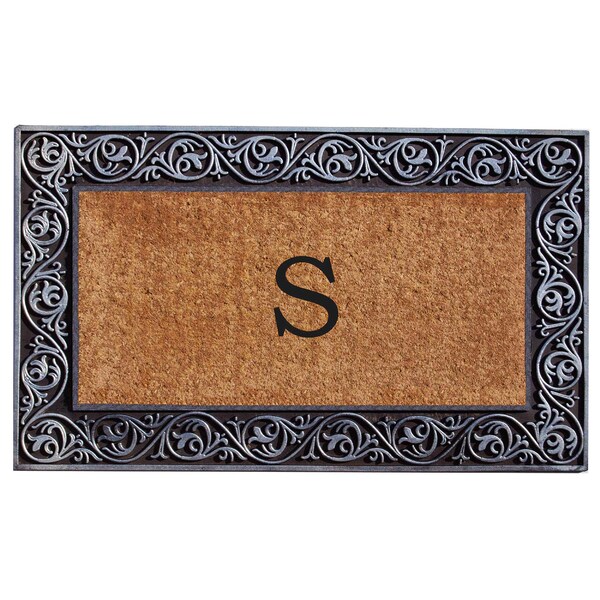 - • Heavy-duty silver rubber border with monogram coir center