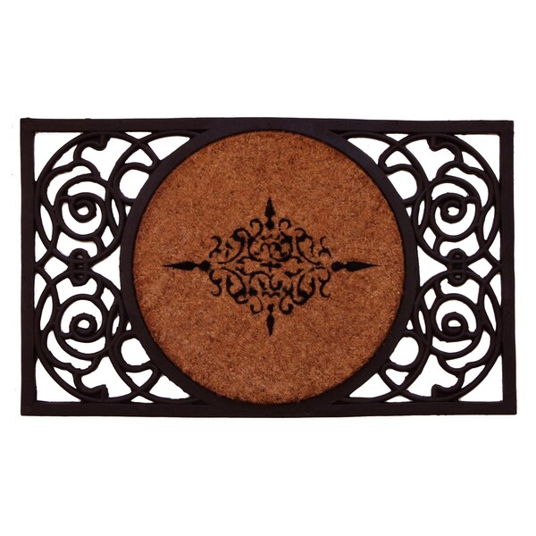 The beautiful combination of coir and rubber in this doormat make a stylish reception for your guests. While the heavy-duty rubber adds weight and elegance, the coir acts as a natural scraper on shoes to keep debris from entering your home. Sweep or hose clean.