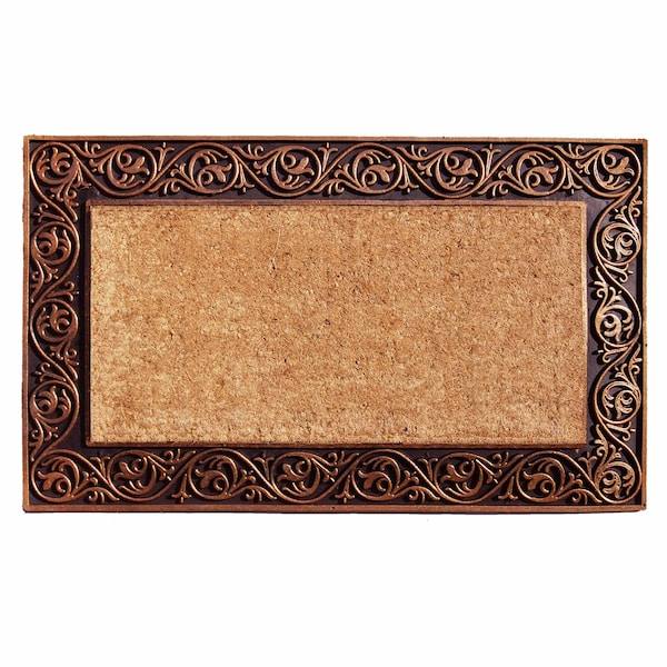 The beautiful combination of natural coir and bronze rubber in this doormat make an elegant reception for your guests. Designed to complement today's door hardware, this mat is colorfast, weather tolerant and made to withstand heavy traffic. Sweep or hose clean.