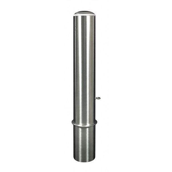 Bollard, Material Stainless Steel, Wall Thickness 0.365 in, Color Natural, Finish #4, Overall Height 54 in, Number of Mounting Holes None, Locking System External Padlock, Cap Shape Dome