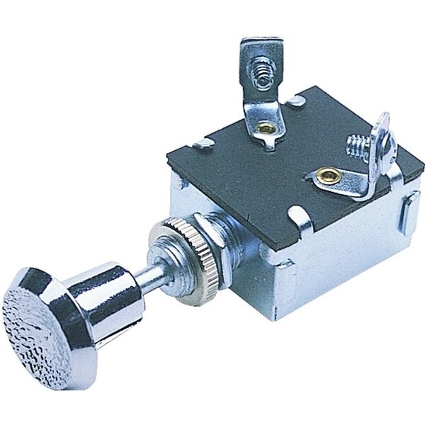 Push/Pull Switch, 15 A, 12 VDC, Screw Terminal, Nickel Housing Material, Chrome