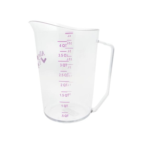 Allergen-free measuring cup; 4 quart capacity; Break resistant Camwear® polycarbonate construction; Purple graduations and Allergen-Free logo make identification quick and easy; Commercial dishwasher safe; Measures liquid ounces, pints, quarts, or liters; NSF Certified; WARNING: This product contains a chemical known to the State of California to cause birth defects or other reproductive harm.