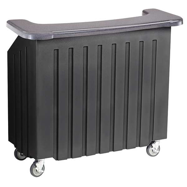Bar, Overall Length 54 in, Overall Width 26 in, Overall Height 46 in, Caster Type Swivel with Brake, Product Type Beverage Bar, Number of Casters 4, Color Black, Includes (5) Bottle Speed Rail and an 80 Pound Capacity Ice Sink, Vinyl Cover, Material Polyethylene