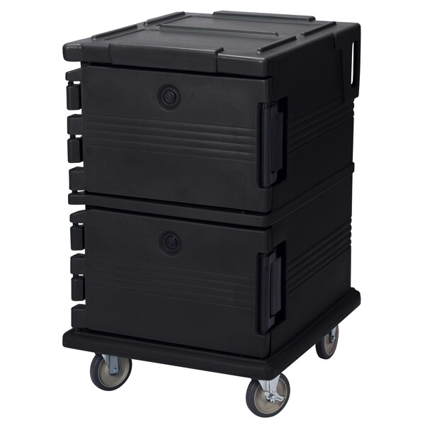 Food Transport Cart, Holding Capacity (12) 4 in Deep, (16) 2 1/2 in Deep, (4) 8 in Deep, (8) 6 in Deep, Pan Size 2 1/2 to 8 in, For Use With Food Pans, Number of Compartments 2, Includes Gasket, Material Nylon (Door Latch), Product Type Food Transport Cart, Color Black, NSF Certified Yes, Loading Orientation Side-Load