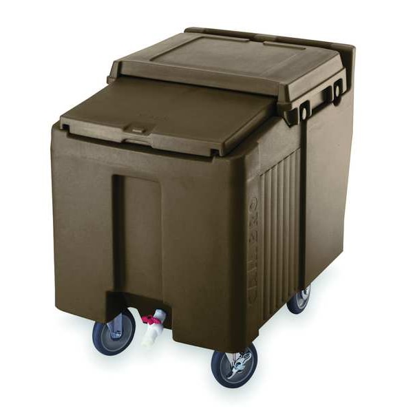 Ice Caddy, Capacity 100 lb, Overall Height 28 3/4 in, Overall Width 22 1/2 in, Overall Depth 30 1/4 in, Material Polyethylene, Color Dark Brown, Door Type Top Sliding, Wheel Type (2) 5 in Swivel Casters, (2) 5 in Casters with Brake, Features The Slidinglid Ice Caddy is Designed with a Unique Lid that Slides Back and Under During use to Reduce the Risk of Cross-Contamination and a Recessed Well with Drain Shelf Keeps Ice Out of Water, Liner Material Polyethylene, Standards NSF