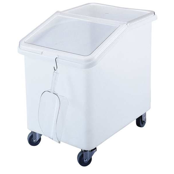 Ingredient Bin, Lid Color Clear, Lid Included Yes, Overall Height 28 in, Bin Style Mobile, Dishwasher Safe No, First In First Out Compatible No, Includes S-Hook, Product Type Ingredient Bin, Capacity 148 qt, Color White, Overall Length 29 1/2 in, Overall Width 21 1/2 in, NSF Certified Yes