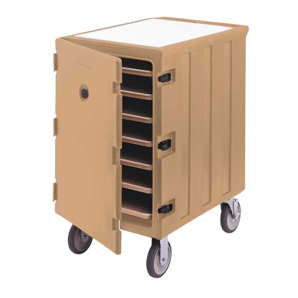 Camcart, Holding Capacity (7) 18 x 26 in Sheet Pans, Number of Compartments 1, Includes Removable Cutting Board, Material Polyethylene, Product Type Camcart, Caster Material Polyurethane, Caster Type (2) Rigid with Brakes, (2) Swivel, Color Coffee Beige, NSF Certified Yes, Loading Orientation Side-Load