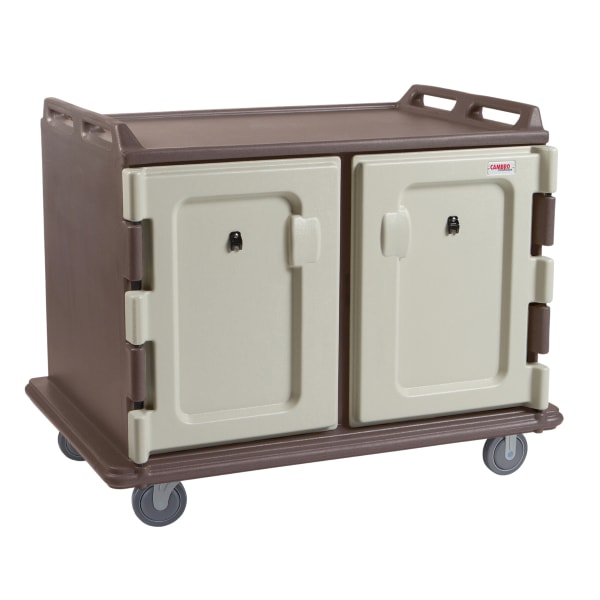 Meal Delivery Cart, Overall Depth 55 1/8 in, Caster Diameter 5 in, Caster Material Nylon, Inside Depth 30 1/4 in, Inside Height 27 1/2 in, Inside Width 20 1/2 in, Overall Height 44 1/4 in, Product Type Meal Delivery Cart, Color Granite Sand, Distance Between Rails 5 1/2 in, Insulated Yes, Material Polyethylene, Number of Compartments 2, Number of Doors 2, Number of Trays 20, Overall Width 38 in, Number of Menu Clips 2, NSF Certified Yes, Caster Configuration (2) Rigid, (2) Swivel with Brakes
