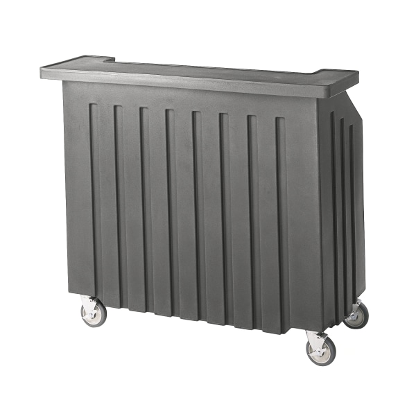 Portable Bar, Overall Length 54 in, Overall Width 26 in, Overall Height 46 in, Caster Type Swivel with Brake, Product Type Beverage Bar, Color Gray, Includes (5) Bottle Speed Rail and an 80 Pound Capacity Ice Sink, Vinyl Cover