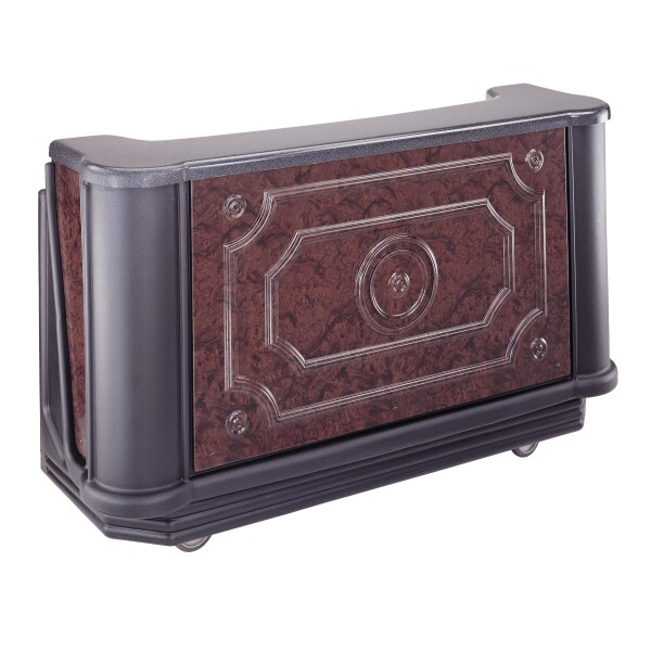 Portable Bar, Overall Length 77 1/2 in, Overall Width 28 1/2 in, Overall Height 47 1/2 in, Caster Type Swivel with Brake, Product Type Beverage Bar, Color Carmel, Includes (7) Bottle Speed Rail, Vinyl Cover