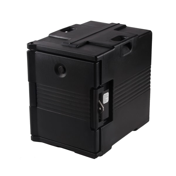 Food Pan Carrier, Holding Capacity (6) 2 1/2 in Deep, Pan Size 4 in, For Use With Food Pan Carrier, Material Nylon (Latch), Product Type Food Pan Carrier, Color Black, Gastronorm Dimension GN 1/1; GN 1/2; GN 1/3, NSF Certified Yes, Loading Orientation Side-Load