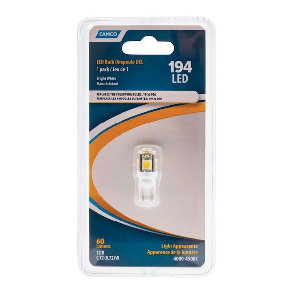 Every home needs an electronics expert, someone who can decide if it makes sense to buy the latest equipments. If you are a gadget freak, our Electronics catalog is your dream destination. If you're still stuck at the basics, our elaborate product specifications shall handhold you through the purchase. Features RV Replacement 194 LED Bulb Specifications Type: LED Bulb Color: Bright White Power: 12V