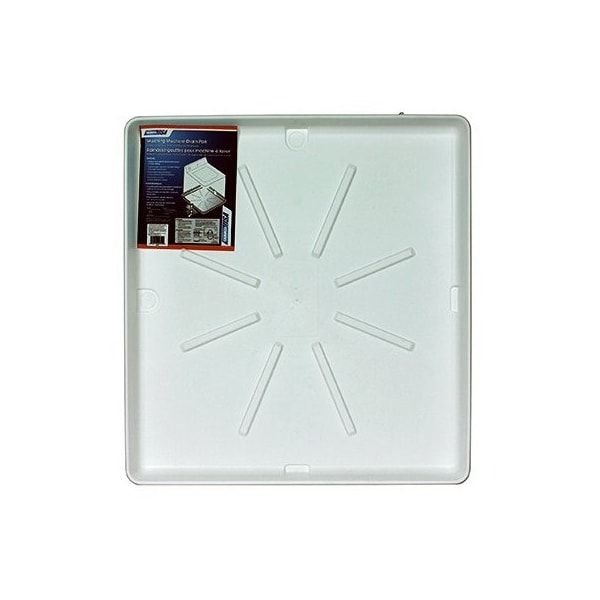 30 x 32 OD, Washing Machine Pan, Provides Protection From Washing Machine Overflow, Includes 1 To 112 PVC Drain Fitting, Bottom Or Side Outlet, Not Precut, Made From White Polypropylene Plastic, Matte Finish, Will Not Rust, Corrode Or Crack, 1 To 112 Drain Can Pass All Codes, Easy To Install