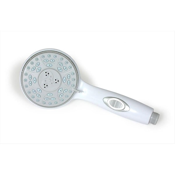 Features Enjoy longer showers with this ergonomically designed, handheld showerhead. Convenient on/off switch allows you to pause the flow of water while shampooing, greatly reducing the amount of water used. No more rushing through your shower to conserve water. Multi-featured showerhead allows you a choice of four spray patterns. From a drenching rain to a gentle massage, you can personalize your shower with your favorite comfort settings. Heavy-duty construction for years of use. Produces 2.5gpm with 40psi at the water source and 1.7gpm with 25psi at the water source. Color - White