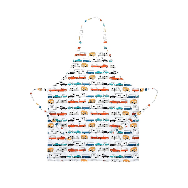 Camcos Life is Better at the Campsite Apron is RV-patterned, perfect for RV enthusiasts. It protects clothing, making it great for baking, cooking and grilling. One size-fits all and is made of 100% cotton. Machine washable.
