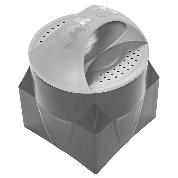 Camco's Magnetic Bumper Cap for 4-in-1 Adapter allows you to store your 4-in-1 adapter onto your RV's bumper. The base stays securely in place on your bumper using high-strength neodymium magnets, allowing you to transport your 4-in-1 adapter externally, so it can be stored in your bumper and out of your storage bays. While in storage, the vented cap provides your 4-in-1 adapter with air flow, helping reduce the build-up of moisture and mold. Once off your bumper, the vented cap can be used to position your 4-in-1 adapter at the dump station without having to handle the adapter. The Magnetic Bumper Cap is made of durable polypropylene and is UV-resistant.