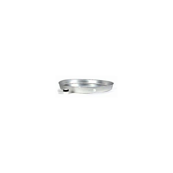 DRAIN PAN ALUMINUM 28IN Specifications: Includes: 1 in and 1-1/2 in Drain Fitting Suitable for: Gas or Electric Water Heaters For gas or electric water heaters. Dual size 1 to 1-1/2 in PVC drain fitting with gaskets included. Sides are 2-1/2 in deep. Pre-cut side opening for drain fitting.