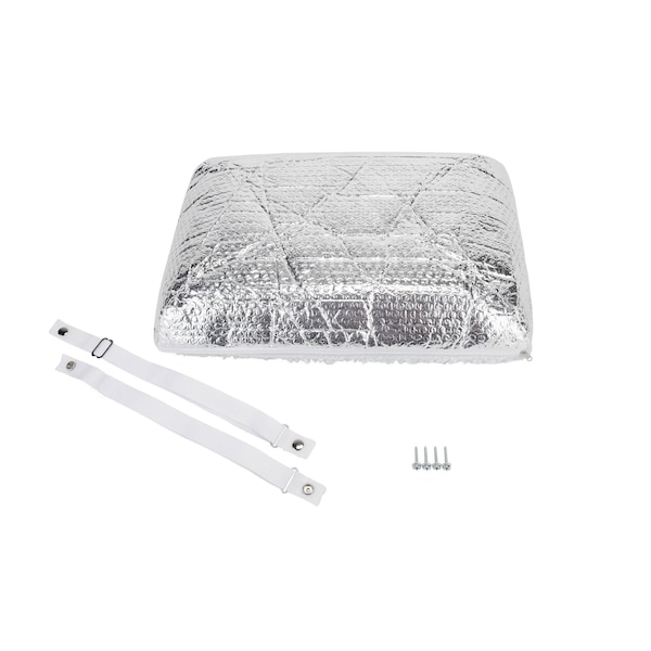 Camco's Dome-Shaped RV Skylight Insulator helps deflect damaging sun rays from your RV's skylight. It fits standard 14 x 22 RV skylights with a 4 depth or more. Once installed, the insulator helps reduce heat transfer, increases A/C efficiency and saves energy. This product helps keep your RV cooler in the summer and warmer in the winter. The skylight insulator measures 14 x 22 x 4.5 at the thickest point. Product includes: 1 foam skylight insulator with sewn cover, 2 adjustable straps and installation hardware. Easy to install.