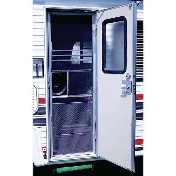 Combine to allow for easier exit and protection of your RV screen door. Adds a sturdy feel to your door and saves repairs to screens. Provides peace of mind, helps prevent children from falling through screen. Adjusts from 20"-29". Easy installation, hardware included.