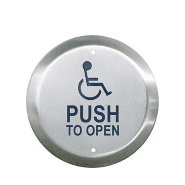 Camden: 6" Round Push Plate Switch, Push to open faceplate graphic.