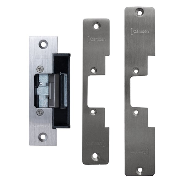 Grade 1 Low Profile Electric Strike, 12/24 VDC/AC, Fail Safe/Fail Secure, 5/8-in Latch Projection, Includes Multiple Faceplates, For Cylindrical Locks, Satin Stainless Steel Finish
